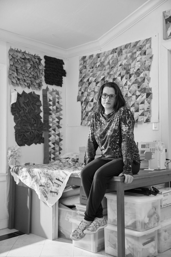 Regina Durante Jestrow (1978) is a textile artist based in Miami, originally from Queens, NY. Her work reinterprets American quilting traditions, blending geometric patterns with hand-dyed and repurposed fabrics. Inspired by South Florida’s landscapes and diverse culture, Jestrow explores themes of women’s rights, history, and textile waste. Her quilts, sculptures, and installations merge personal narratives with vibrant, unconventional materials, paying homage to Miami’s pop culture.